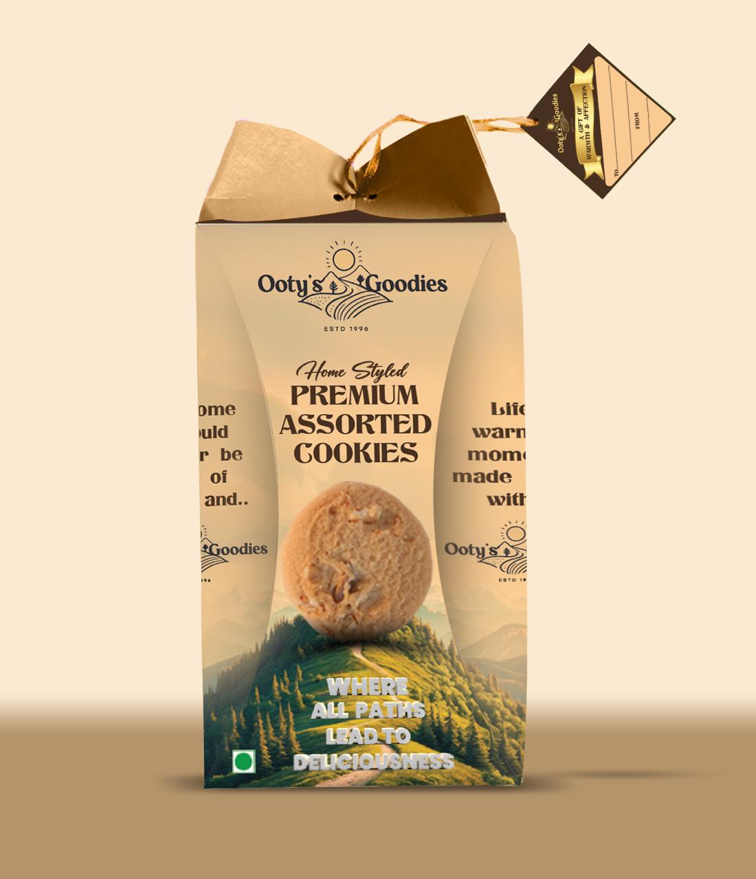 Indulge in the exquisite world of Ootys Goodies with our Goody Jar, a delightful assortment of 7 heavenly cookie flavors: Kesar Badam Pista, Butter Cashew, Chocolate, Crunchy Coconut, Butter, Salted, and Vanilla.